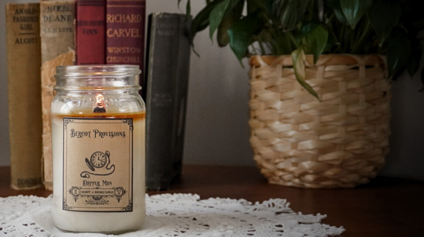 Hello and welcome to Bercot Provisions. Explore our unique assortment of candles and wax melts. Our candles feature wood wicks, while both candles and wax melts have been meticulously crafted using coconut wax, beeswax and one-of-a-kind scents. Each of our candles and wax melts are created to fill your space with inviting cozy scents with a nostalgic feeling.